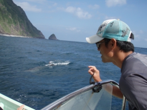 帰国後、商業イルカウォッチングがすでに行われていた小笠原で、船を持つための漁師見習いを経た後、イルカ・クジラ写真家である宇津孝さんのアシスタントとなってイルカを追ううちに御蔵島へ流れ着く。