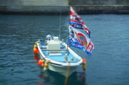 「海豚人丸(うみとんちゅ)」とは、沖縄の「海人(うみんちゅ)」と「海豚(いるか=うみとん)」をかけて作った造語。2013年末、約10年間のイルカウォッチングの相棒だった第二海豚人丸が引退し、ついに第三海豚人丸が登場しました。第三海豚人丸は、第二に比べ、イルカウォッチング中の酔いの原因?だった燃料くささがかなり軽減されています。